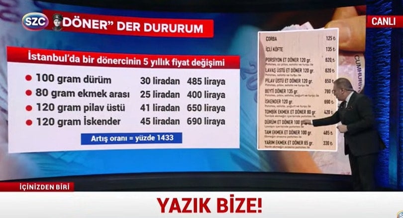 İçinizden Biri Ekrem Açıkel, SÖZCÜ TV ekranlarında dönerin son 5 yıldaki artışını inceledi.